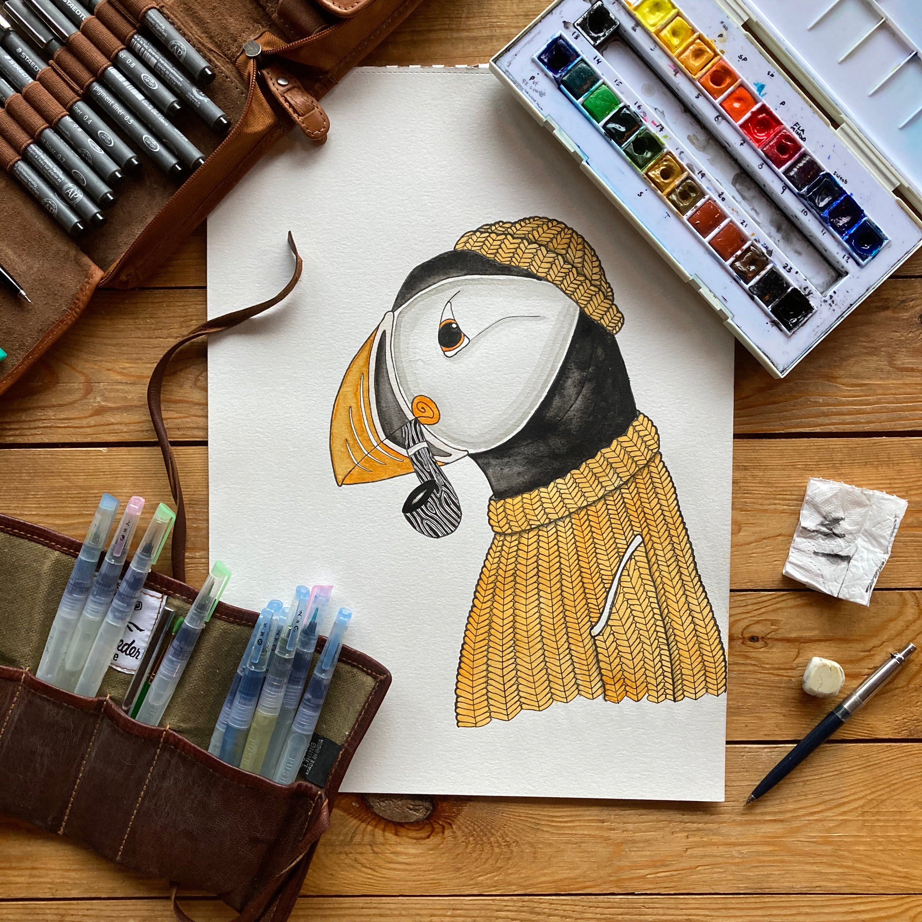 Mini Flying Puffin T-shirt (Wood Thrush)