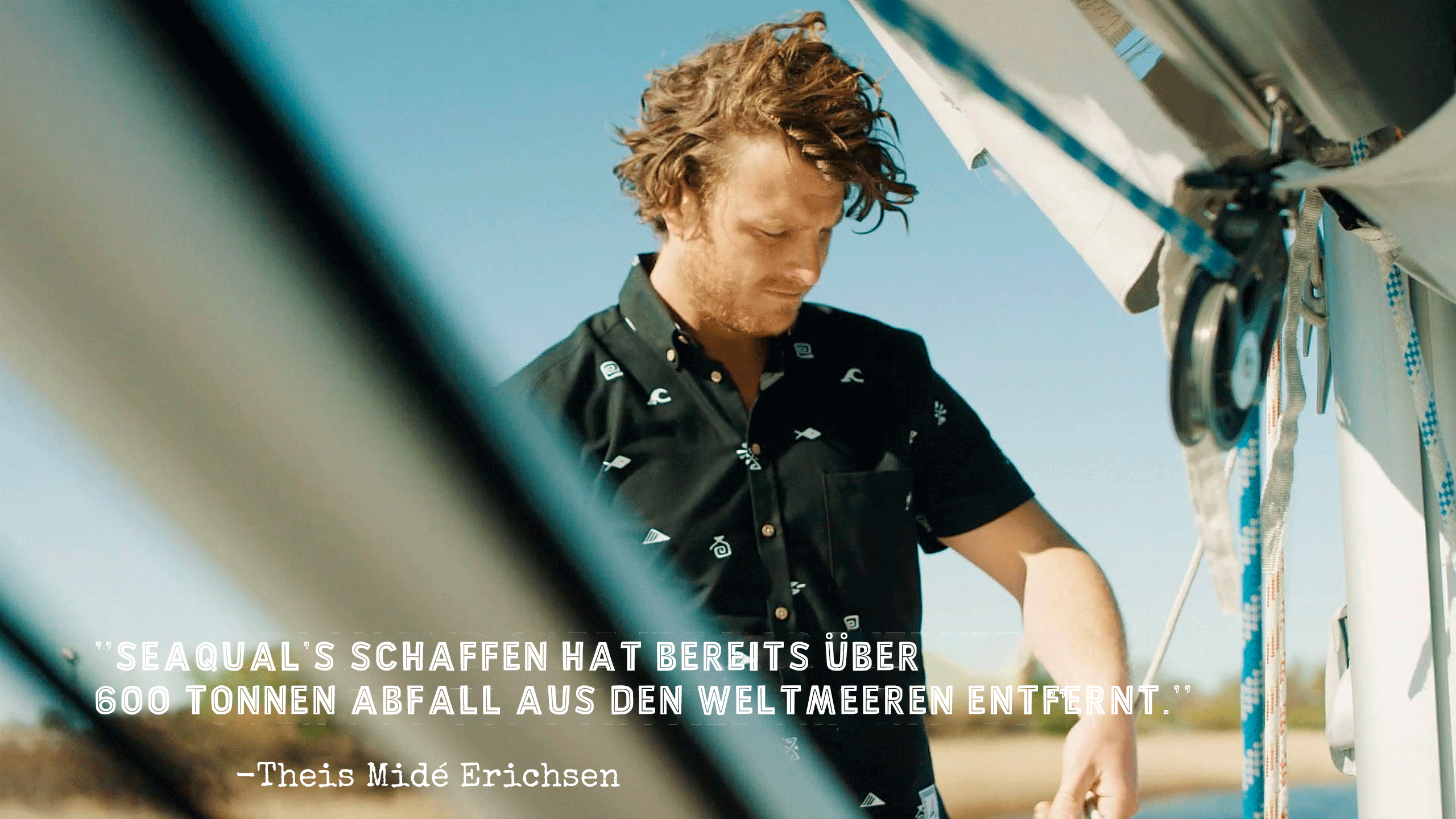 Die Hemden der Kollektion werden aus SEAQUAL™YARN hergestellt - einem Stoff, der aus recycelten Flaschen und Plastikabfällen hergestellt wird, die von Fischereibooten entlang der Küste Europas gesammelt wurden.